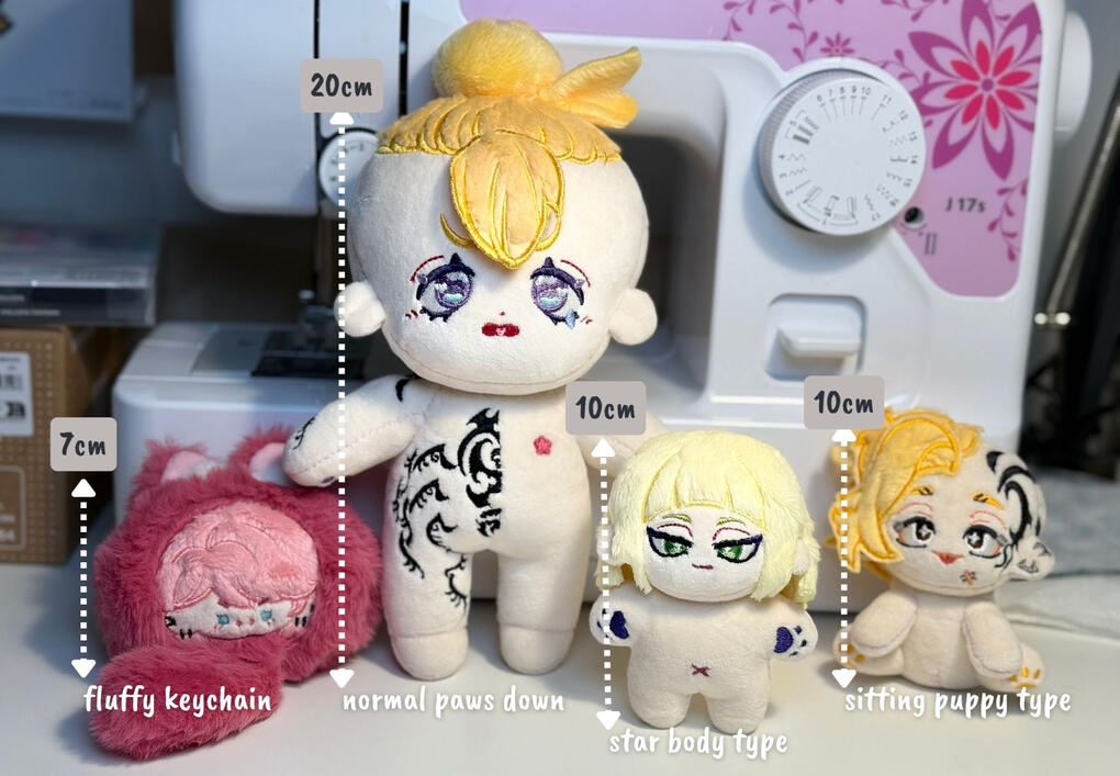 If, for any reason, I am unable to complete the commission, I will fully refund the cost of the order.If you wish to cancel the commission before work has begun, please inform me as soon as possible. Otherwise, I may need to retain the amount spent on materials and the transfer fee. Responsibility While I take every care to ensure the quality of my work, I cannot be held responsible for any damage or injury caused by my plush dolls. Please keep them out of reach of children and pets, and supervise their use at all times.*During the sewing process, my cats often linger nearby. Although I try to prevent their fur from getting into the fabric or stuffing, please be cautious if you have an allergy to cat hair. Payment Full payment is required before I ship the end doll. Payment will be made via PayPal money request.I do not give discounts even if you make multiple orders (。•́︿•̀。) Waiting time Please note that the waiting time includes the time required to obtain materials. If certain materials are not in shortage, the total wait time will be longer. I will start working on the commission as soon as possible once I have received all the materials.When placing an order, please consider that I have a primary job, and I may not be able to take urgent commissions. While I will try my best to keep my clients updated on the condition of their commissions, months of wait time are possible. I do not recommend commissioning me if you're not ready for any of this.If your plush is scheduled for a certain month, please, also allow for a grace period of 4-8 weeks. I will be posting any urgent updates on my twitter & bluesky. Quality and care All my plushies are handmade, so please refrain from expecting plush with factory-quality. I do my best to sew the plush securely, but the hand-stitched parts are still more delicate and could break with rough handling. Please treat the plush with care to avoid possible damage. Delivery Just before shipping I will contact you to make sure the shipping address you provided is correct and complete. Please be prepared that i will ask for: